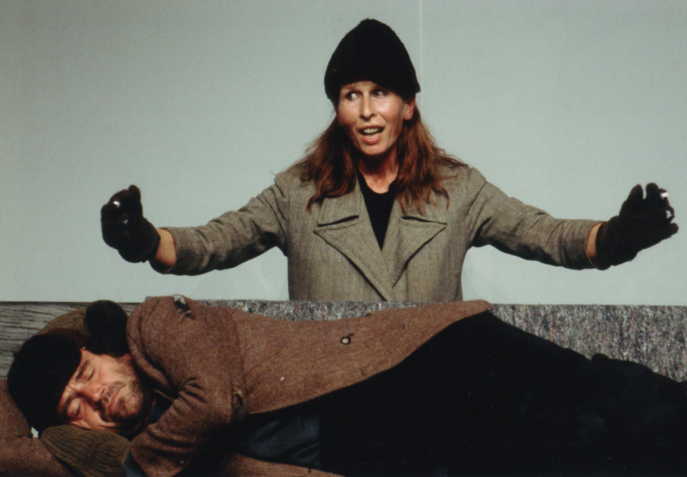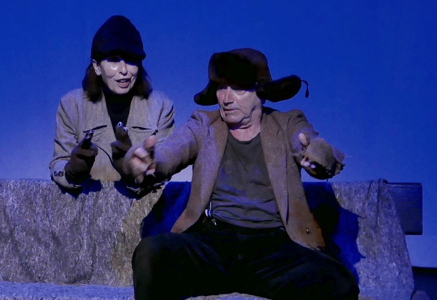 Eine Frau und ein Mann – sie leben beide auf der Straße – erzählen die Geschichte von der Traumreise des kleinen Bären für Kinder und Erwachsene.